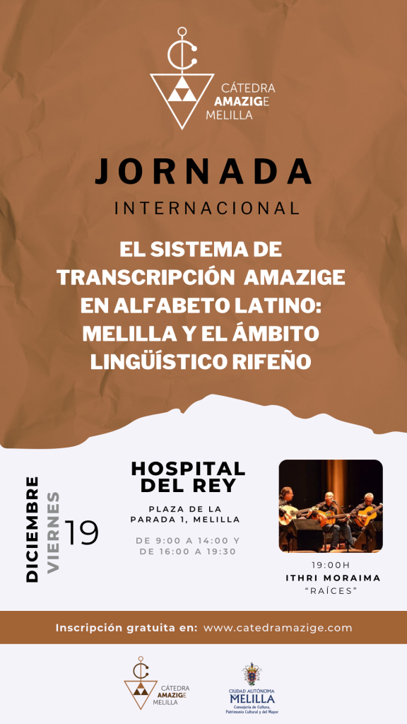 Esta jornada reunirá a investigadores, docentes y especialistas de diferentes universidades e instituciones para reflexionar sobre el sistema de transcripción amazige en alfabeto latino, con especial atención al caso de Melilla y su ámbito lingüístico rifeño. El objetivo es abrir un espacio de debate en torno a los desafíos y posibilidades de la escritura amazige, su enseñanza y su proyección en contextos locales y transnacionales.